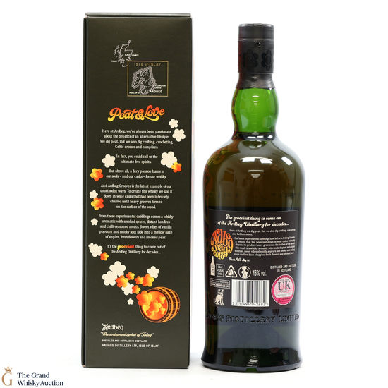 This limited edition Islay single malt was released to mark the 2018 Ardbeg Day at the Islay Festival of Music & Malt. The theme is a throwback to the Island's 1960s spirit, embodying the ideals of 'peat & love'! Ardbeg Grooves is crafted with ex-wine casks that are re-charred to create heavy grooves in the wood, allowing more interaction with the spirit and creating a richer flavour.