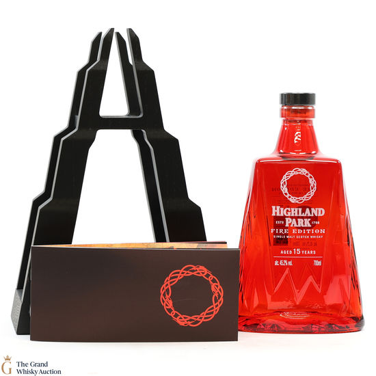 This stunning Highland Park 15 year old single malt follows the 'Ice' edition to complete this Highland Park two-part series. The 'Fire' edition celebrates Muspelheim, the glowing Norse fire realm of destruction. The malt was matured in refill Port casks and bottled at 45.2% abv. It's presented in a cradle shaped like a mountain.