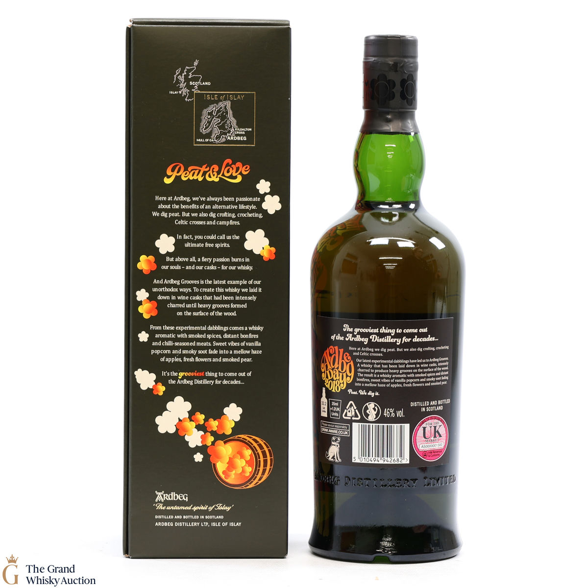 This limited edition Islay single malt was released to mark the 2018 Ardbeg Day at the Islay Festival of Music & Malt. The theme is a throwback to the Island's 1960s spirit, embodying the ideals of 'peat & love'! Ardbeg Grooves is crafted with ex-wine casks that are re-charred to create heavy grooves in the wood, allowing more interaction with the spirit and creating a richer flavour.