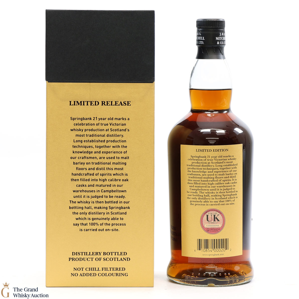 Due to the various ages of bottles and their seals, the condition of liquid is at the buyer's discretion and no claim can be lodged against failure/leakage in transit. Loss and breakage cover is available at 3% of the hammer price as standard. If the lot is not insured, no claim can be lodged against the courier or The Grand Whisky Auction for breakage or loss in transit.