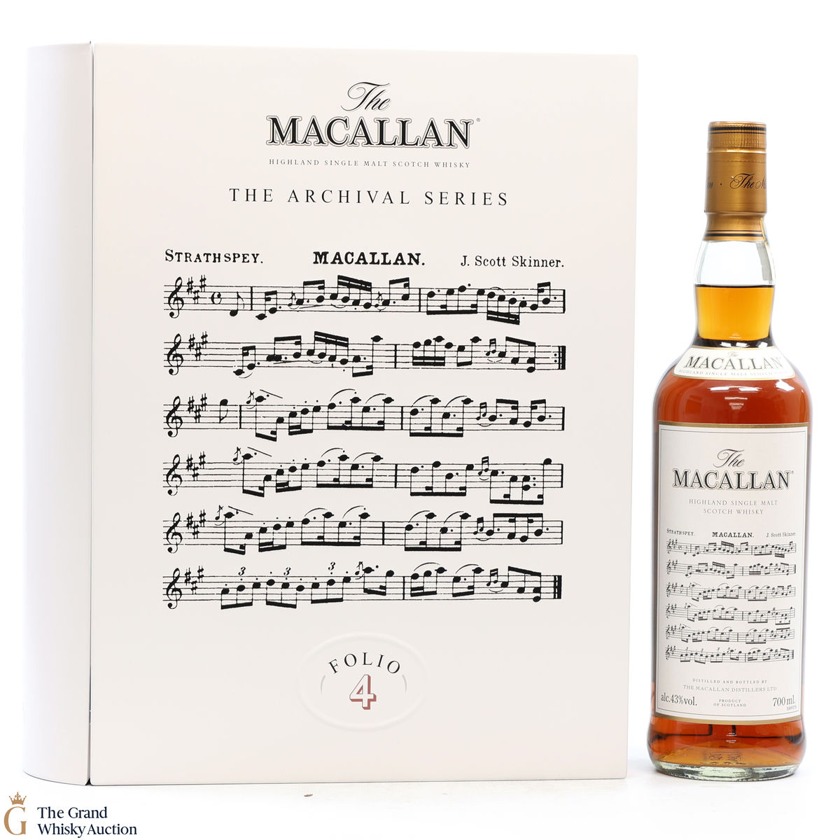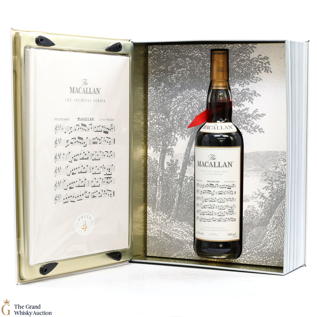Folio 4: The fourth edition in the Archival Series from The Macallan. Folio 4 remembers the legendary advertising campaigns of the 1970s, 1980s and 1990s that brought The Macallan to the public’s attention outside of Scotland. It is presented in a beautiful book shaped, tin case. It features an advertisement including a Strathspey composed by James Scott Skinner (1843-1927). The advert notes that Skinner was so moved by his favourite malt he created a unique piece of music featuring his signature lilting notes with the simple catchphrase: “The Macallan. The Malt.” Bottled at 43% ABV, 70cl.