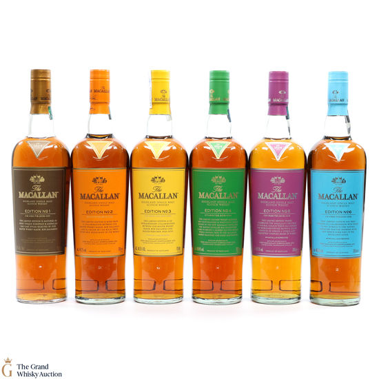 This lot brings together the Macallan Edition set to date, comprising of Edition no. 1, 2, 3 4, 5 & 6 in the annual limited edition series.