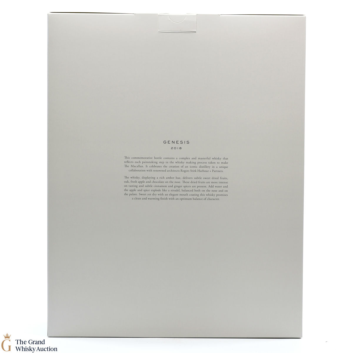 The Macallan Genesis Limited Edition marks the creation of the iconic Distillery in a unique collaboration with internationally acclaimed architects Rogers Stirk Harbour + Partners. Released in August 2018, the special edition bottling commemorates the unveiling of the brand new Macallan Distillery which opened in June 2018.