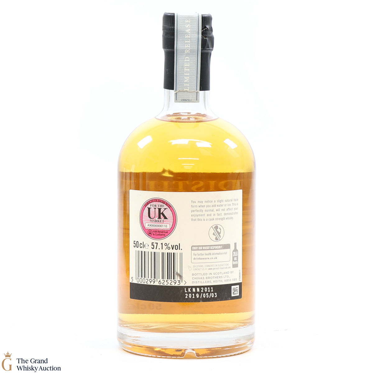 Due to the various ages of bottles and their seals, the condition of liquid is at the buyer's discretion and no claim can be lodged against failure/leakage in transit. Loss and breakage cover is available at 3% of the hammer price as standard. If the lot is not insured, no claim can be lodged against the courier or The Grand Whisky Auction for breakage or loss in transit.