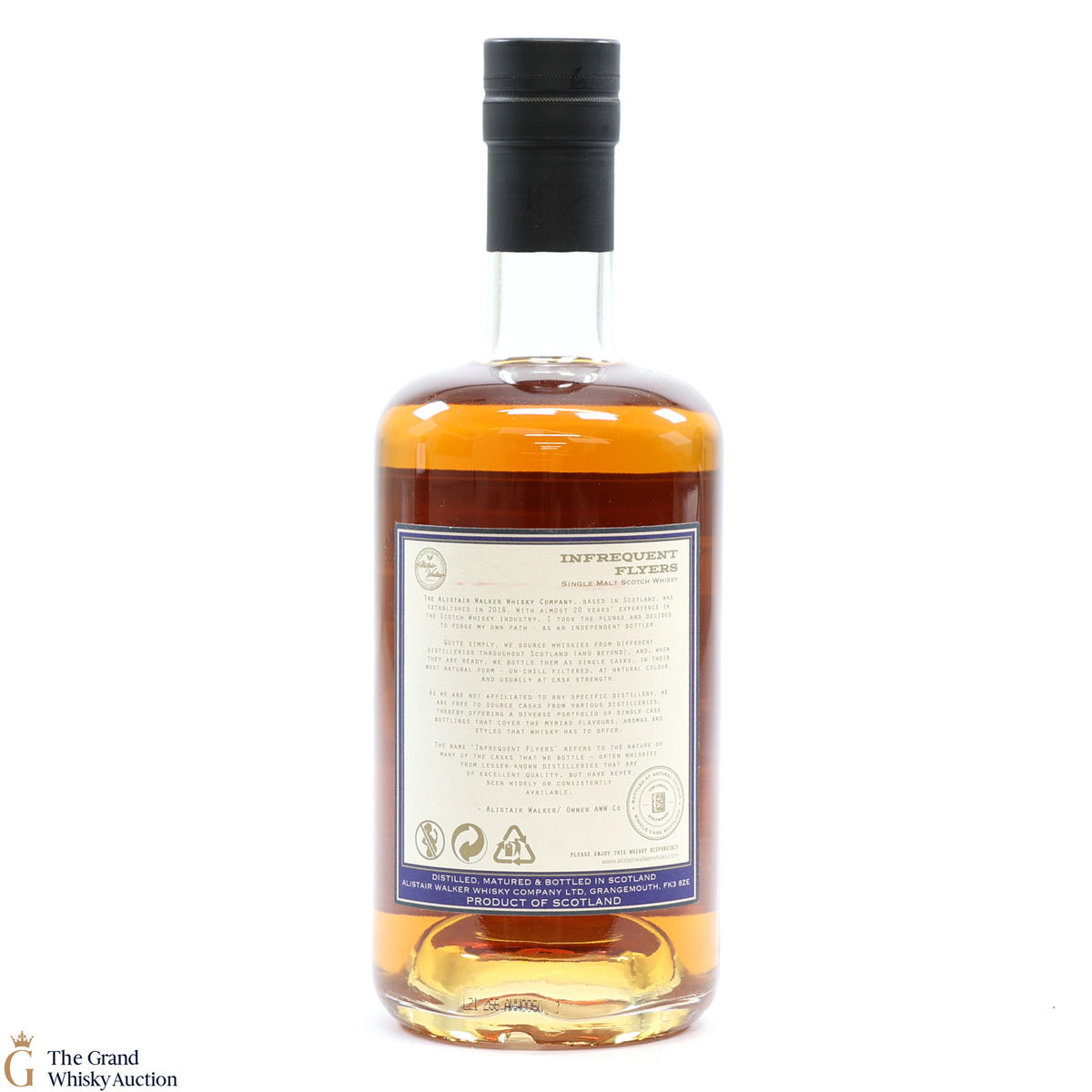 Due to the various ages of bottles and their seals, the condition of liquid is at the buyer's discretion and no claim can be lodged against failure/leakage in transit. Loss and breakage cover is available at 3% of the hammer price as standard. If the lot is not insured, no claim can be lodged against the courier or The Grand Whisky Auction for breakage or loss in transit.