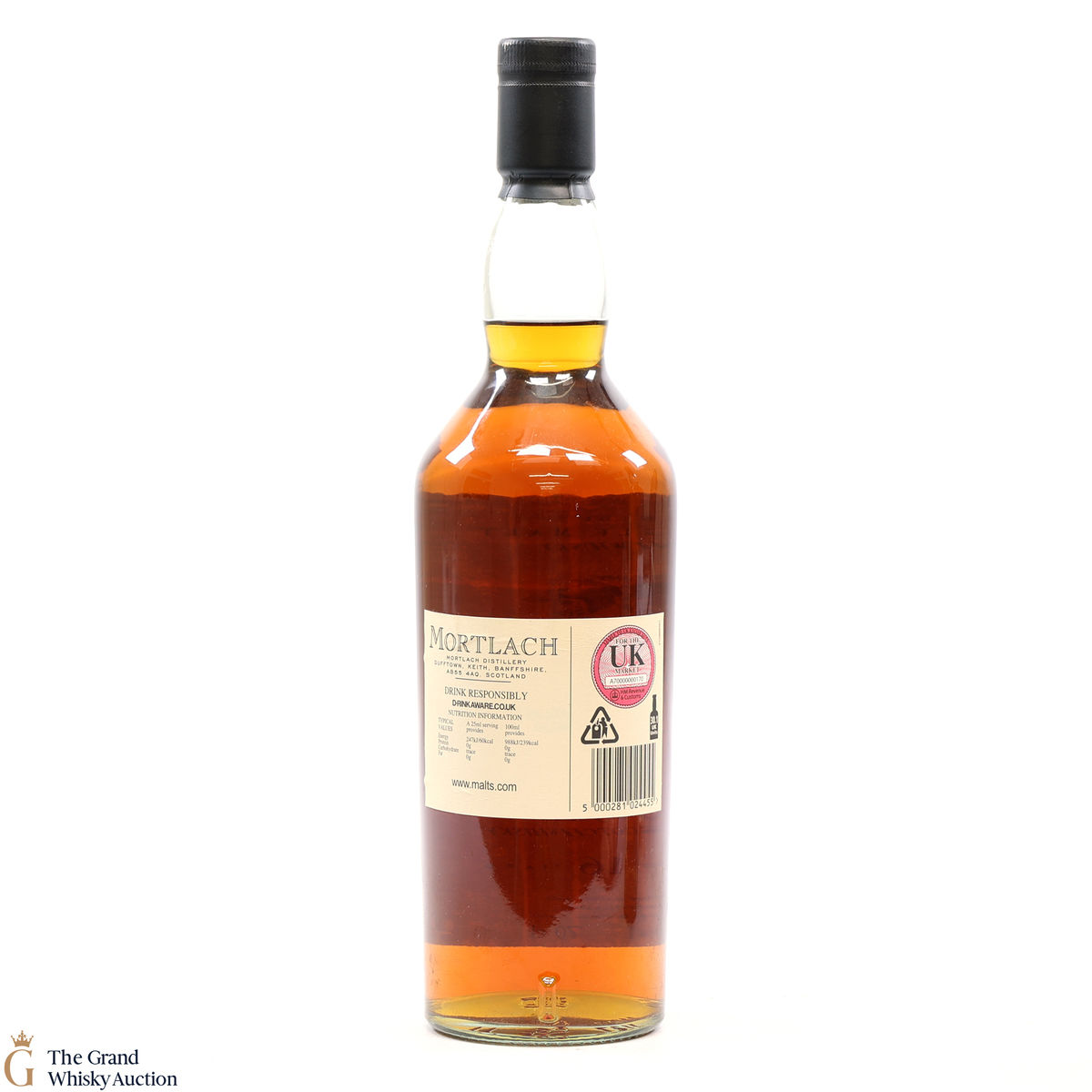 Due to the various ages of bottles and their seals, the condition of liquid is at the buyer's discretion and no claim can be lodged against failure/leakage in transit. Loss and breakage cover is available at 3% of the hammer price as standard. If the lot is not insured, no claim can be lodged against the courier or The Grand Whisky Auction for breakage or loss in transit.