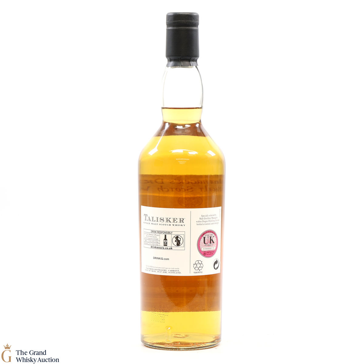 Due to the various ages of bottles and their seals, the condition of liquid is at the buyer's discretion and no claim can be lodged against failure/leakage in transit. Loss and breakage cover is available at 3% of the hammer price as standard. If the lot is not insured, no claim can be lodged against the courier or The Grand Whisky Auction for breakage or loss in transit.