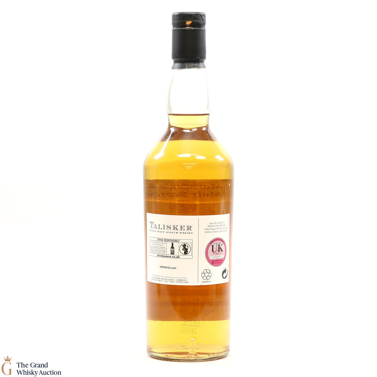A rare Talisker single malt whisky bottled in 2011 for Diageo staff, at natural cask strength. The malt was specially selected by distillery managers within Diageo and bottled at 55.2%. This is an individually numbered bottle.