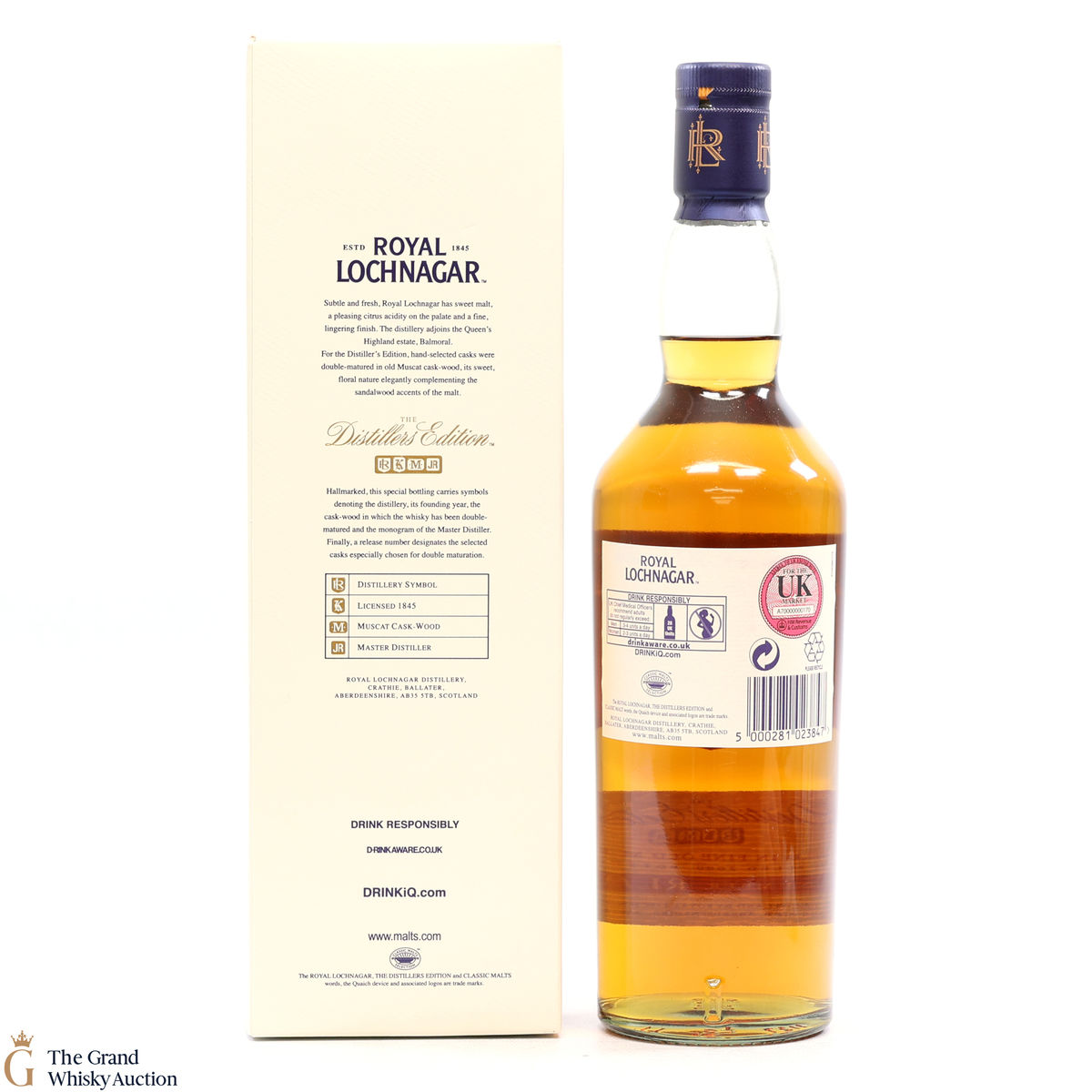This bottle is a 2012 edition of the Royal Lochnagar - Distillers Edition. It was double matured in fine old Muscat Cask-wood which brings a sweet floral richness to the spirit.
