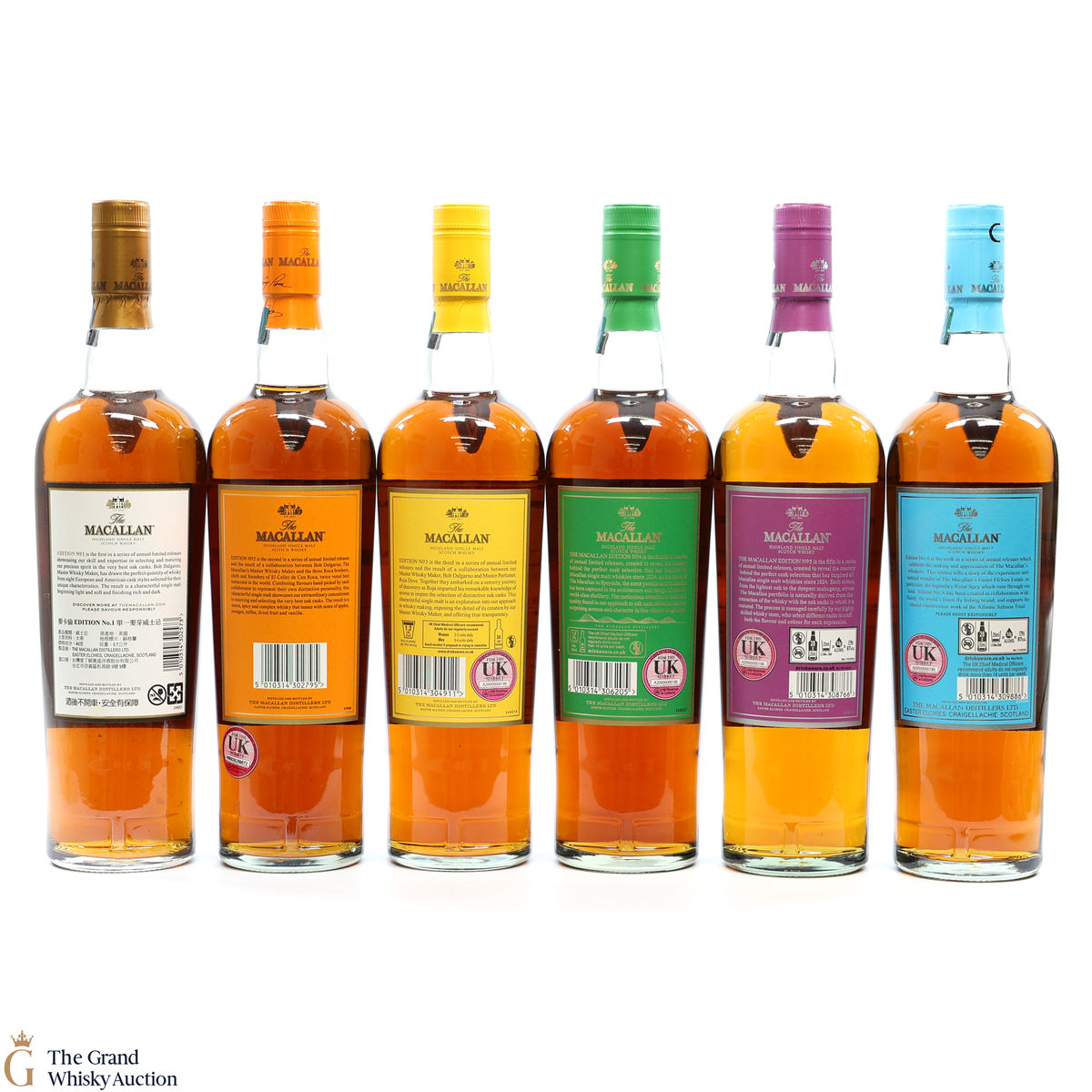 This lot brings together the Macallan Edition set to date, comprising of Edition no. 1, 2, 3 4, 5 & 6 in the annual limited edition series.