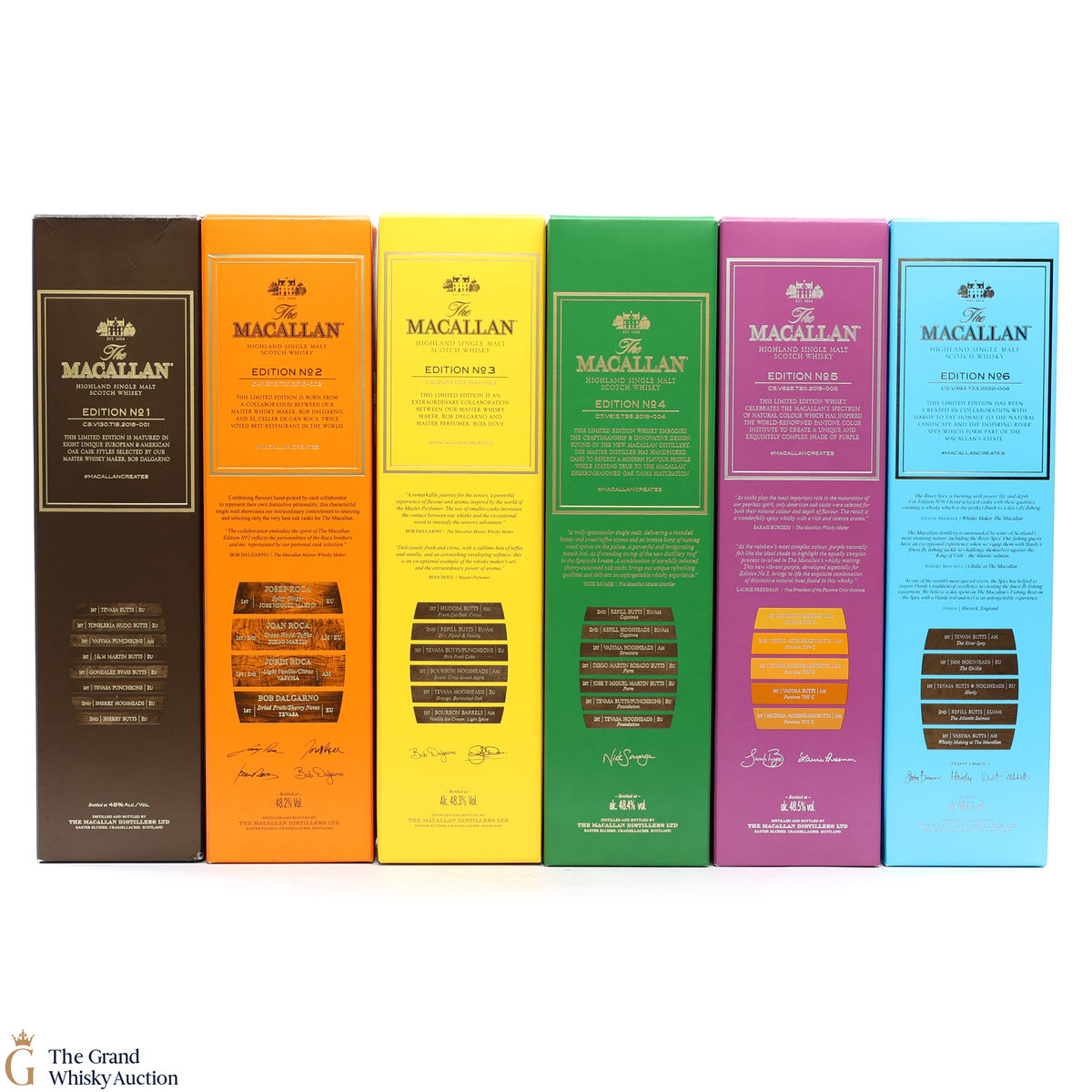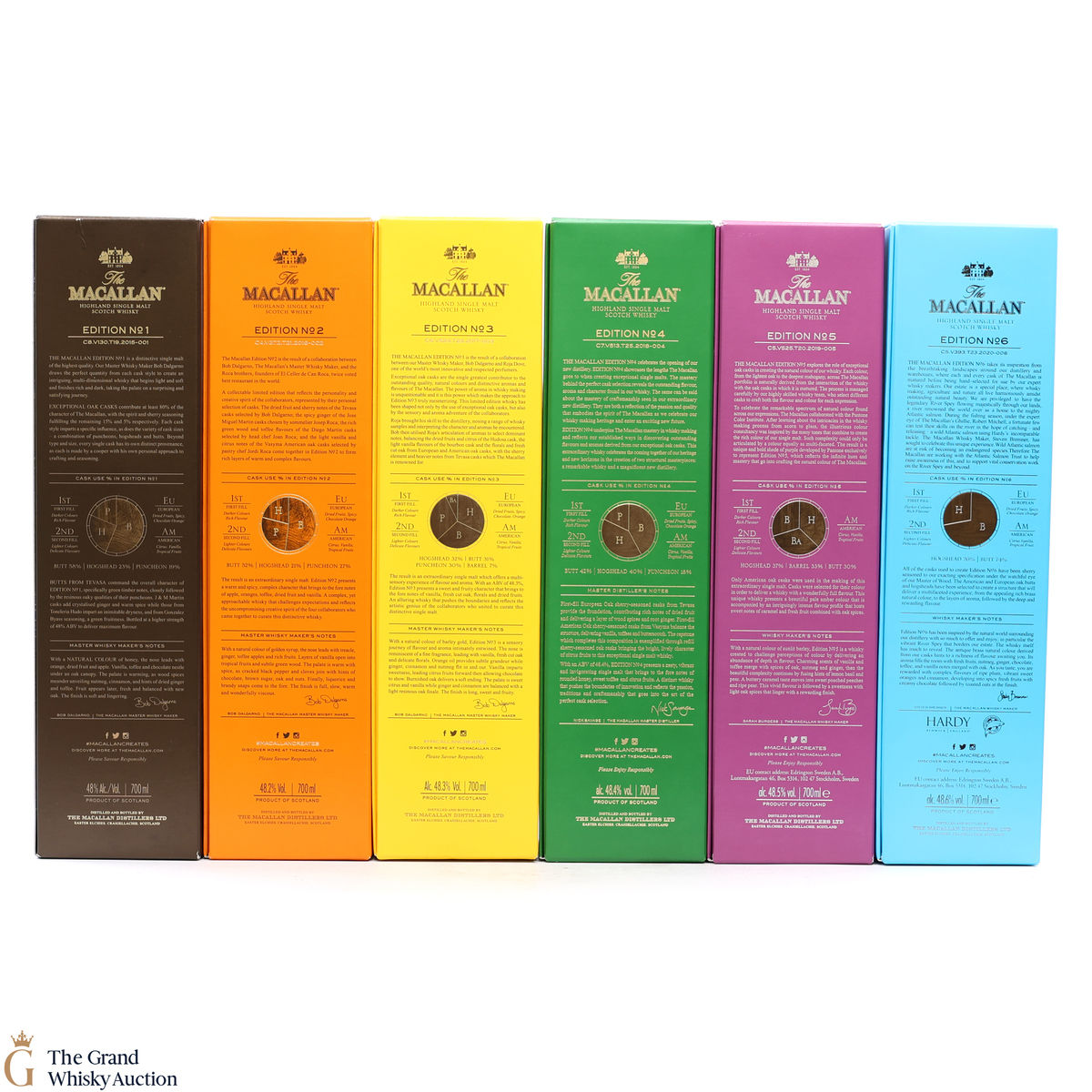 This lot brings together the Macallan Edition set to date, comprising of Edition no. 1, 2, 3 4, 5 & 6 in the annual limited edition series.