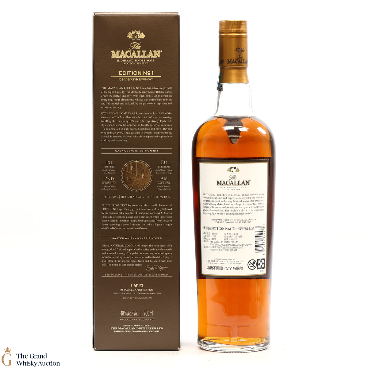 The Macallan Edition No. 1 is the debut expression in the Edition Series. This is a limited edition drawn from eight European and American oak cask styles selected for their unique characteristics.