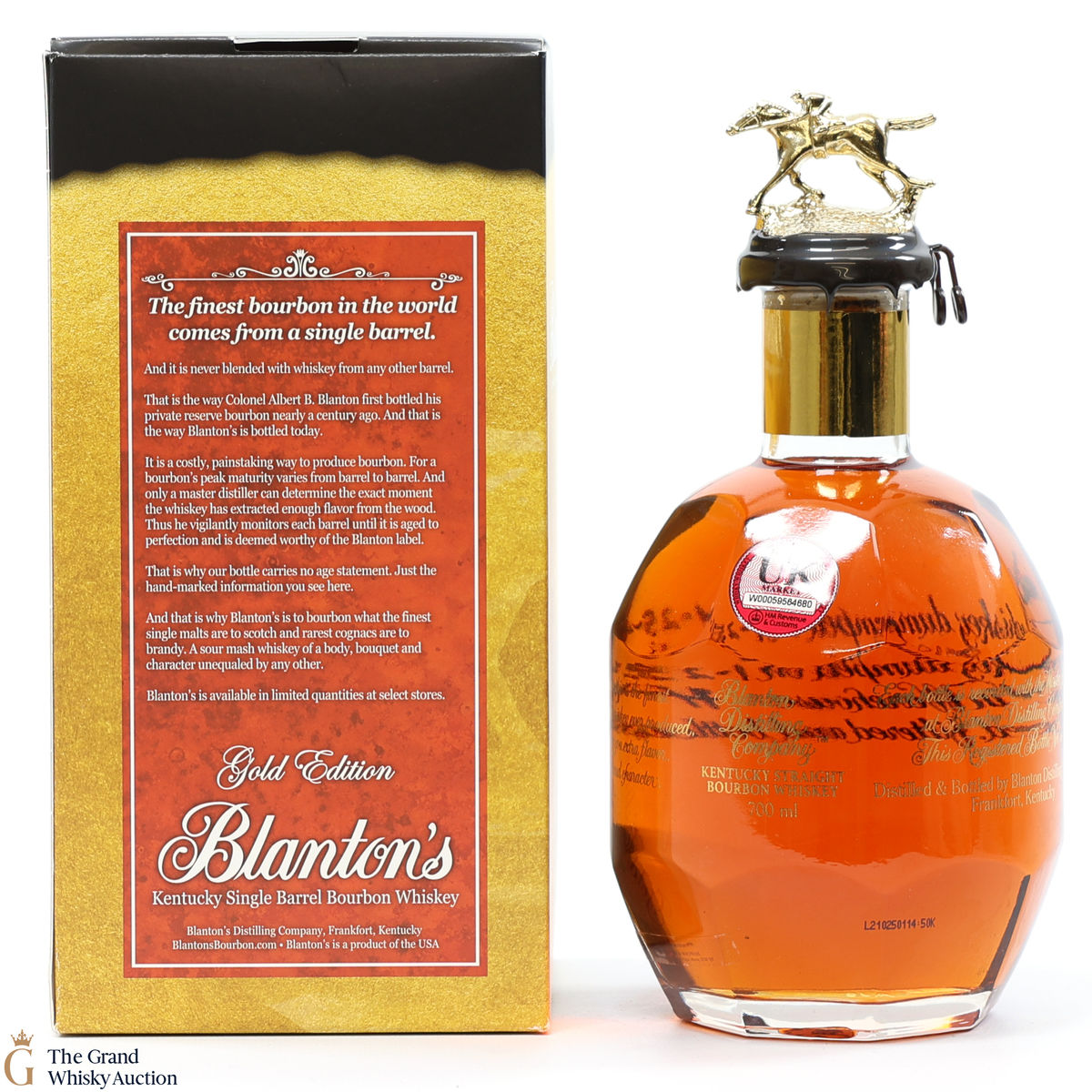 PLEASE NOTE: The wax seal on Blanton's bottles are prone to cracking in transit due to their design. Therefore, as stated in our T&C’s, we do not and will not accept liability should the seal be breached, broken, split or leak in transit. Additionally, please know due to the design of the internal cardboard packaging that surrounds the top of the bottles, it too may be torn. By bidding on this lot you have understood this to be true. Insurance is for complete breakage or loss in transit only.