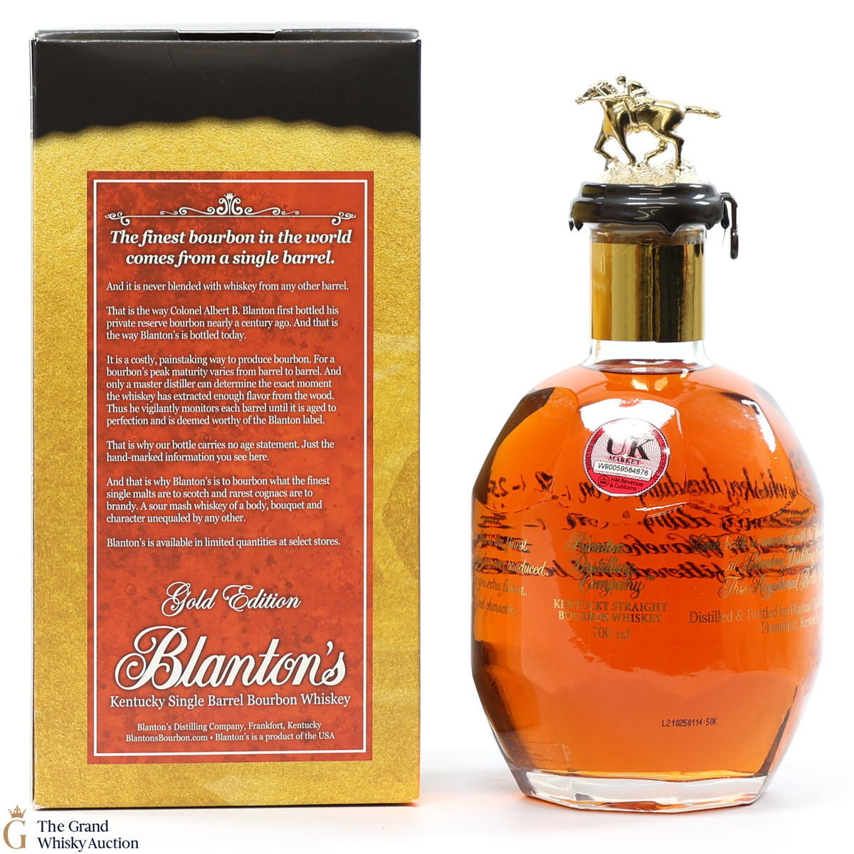 PLEASE NOTE: The wax seal on Blanton's bottles are prone to cracking in transit due to their design. Therefore, as stated in our T&C’s, we do not and will not accept liability should the seal be breached, broken, split or leak in transit. Additionally, please know due to the design of the internal cardboard packaging that surrounds the top of the bottles, it too may be torn. By bidding on this lot you have understood this to be true. Insurance is for complete breakage or loss in transit only.