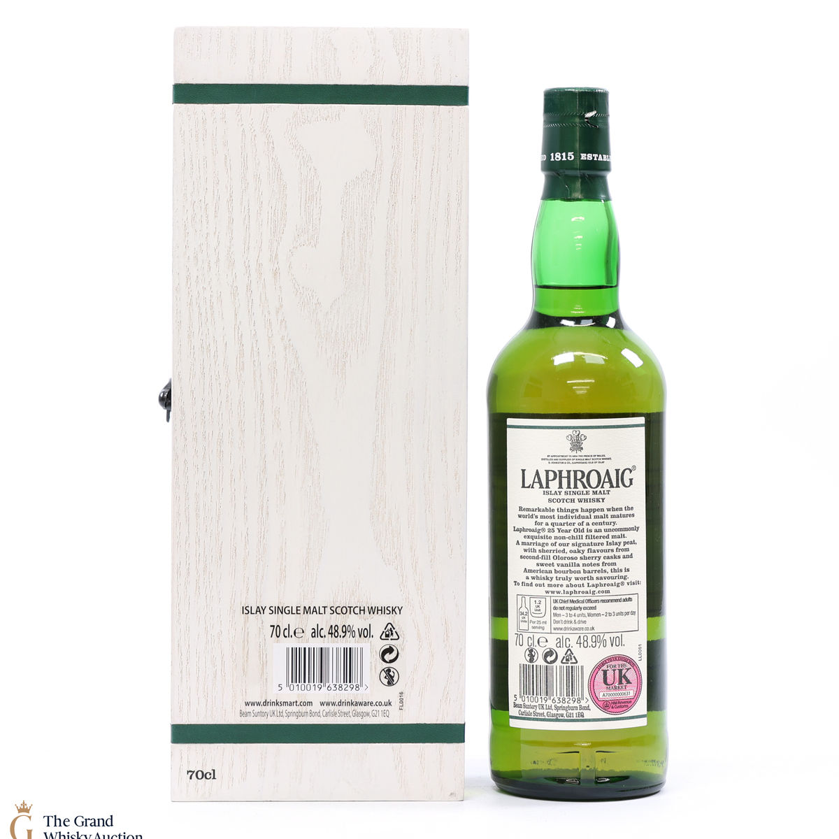 Laphroaig 25 Year Old Cask Strength 2017 Edition is an unlikely combination of whisky that has been aged in second-fill European oak Oloroso sherry casks and American white oak bourbon.