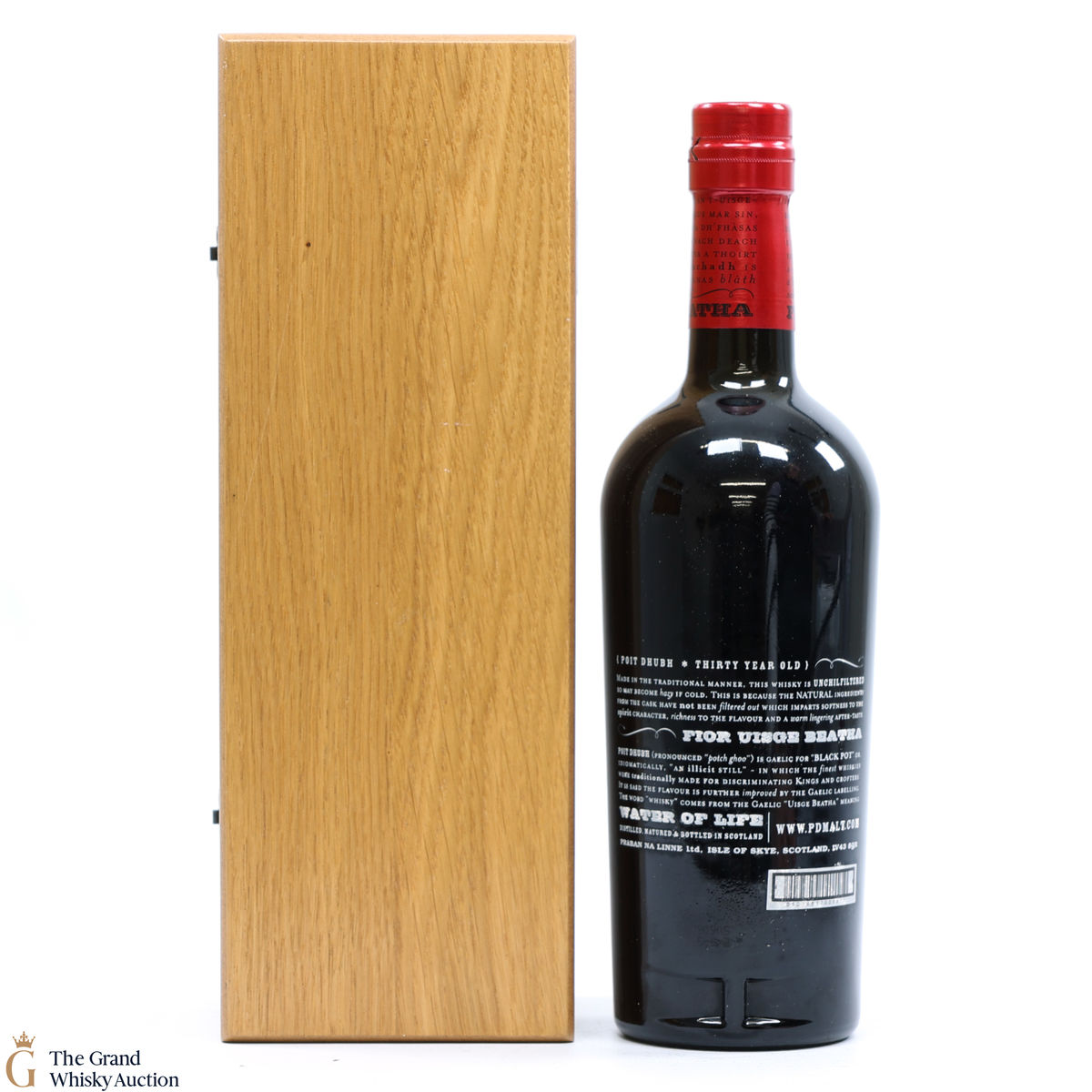 This is an old Gaelic whisky, aged for 30 years. Poit Dubh is Gaelic for Black Pot, a name for an illicit still.