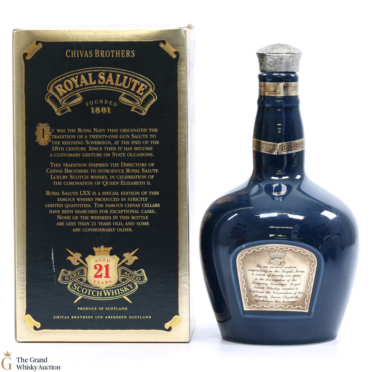 This is a special Sapphire-coloured edition of Chivas' Royal Salute 21 Year Old blended whisky from the Chivas Royal Salute Range.