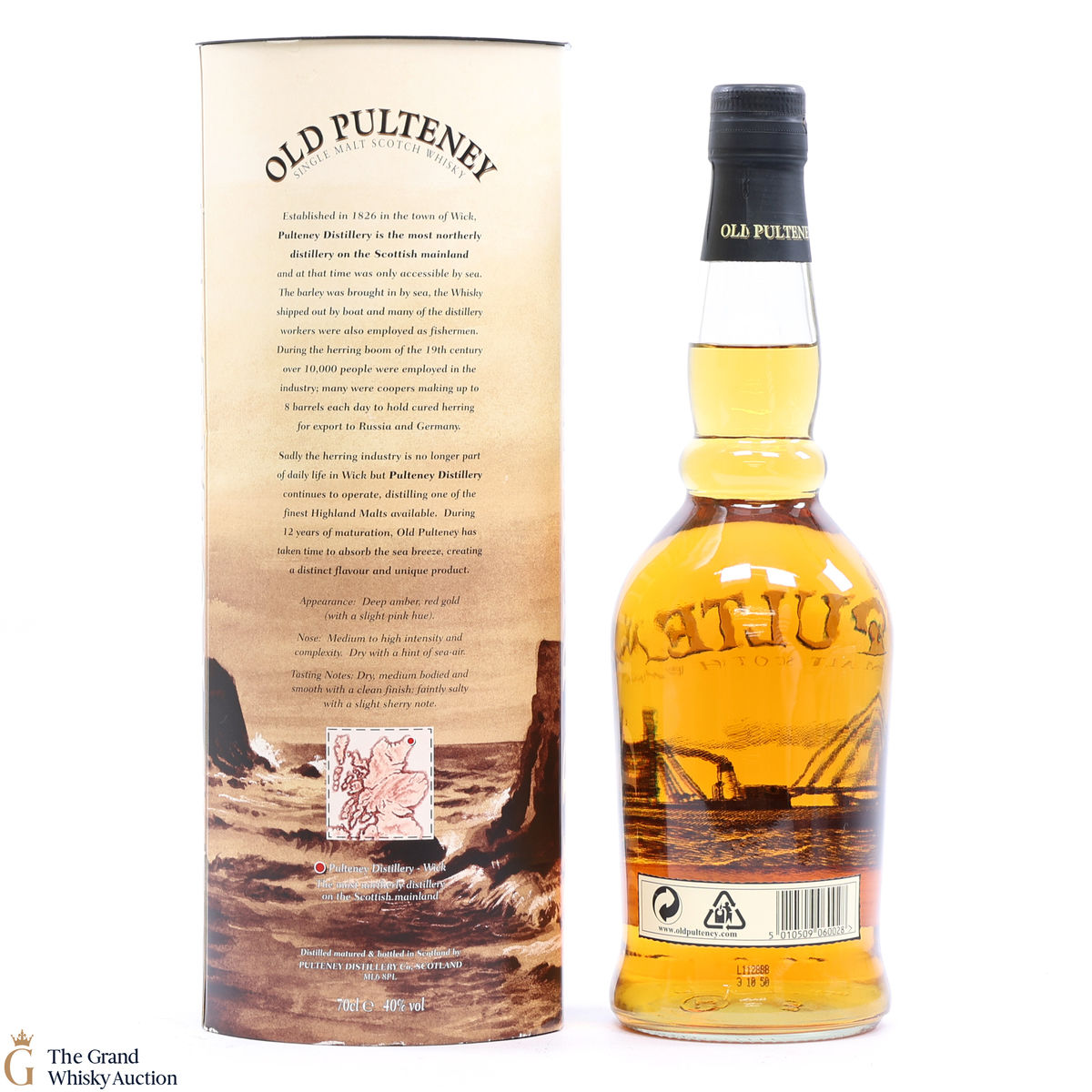 Old Pultney is known as the Maritime Malt due to the distillery location at the very North of Scotland and this is honoured with the unique shape of the bottle.