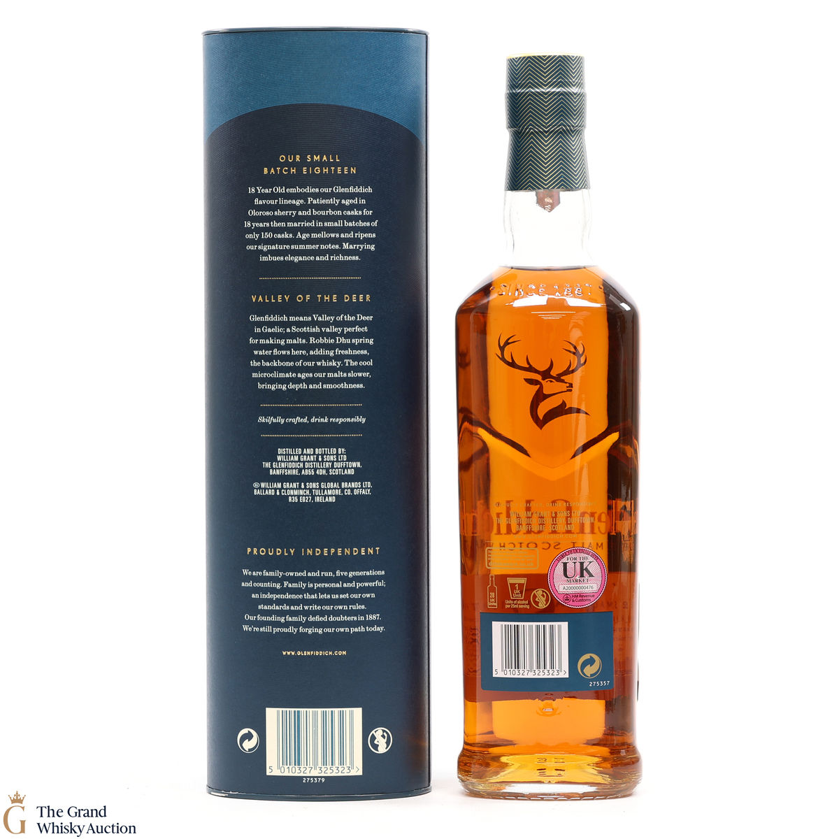 Matured in small batches the Glenfiddich 18 is arguably the most complex in the core range. The single malt has been matured in oloroso sherry and bourbon casks. It is very fragrant with tropical fruit and sherry cask influences, rich baked apple and cinnamon spice compliments by robust oak notes.