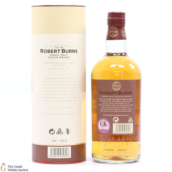 Bottled under the Robert Burns label this bottling of the Arran Single Malt is smooth, malty and sweet with a delicious spicy twist on the finish. "Raise a glass and toast Scotland favourite son."
