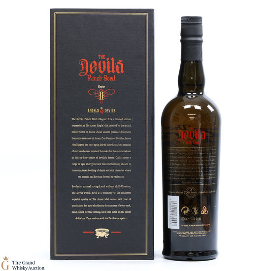 The isle of Arran is known for great whisky and equally stunning views. The distillery has been established since 1995 and swept the whisky nation like a winter storm passing over the Island! This release is Devil's Punch Bowl Chapter 2 - made from 10 Bourbon barrels (4 of which are 2004 peated Arran) and 17 Sherry Hogsheads. This bottling was limited to 6600 bottles and was bottled at 53.1% ABV.