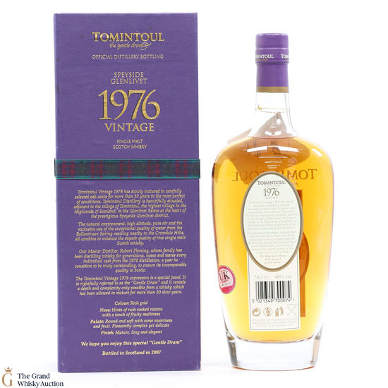 Distilled in 1976 at Tomintoul distillery it was a record-breaking year of sunshine and high temperatures. Left to mature for over 30 years before being bottled in 2007, master distillery Robert Fleming nosed and tasted every cask from the outstanding vintage 1976.