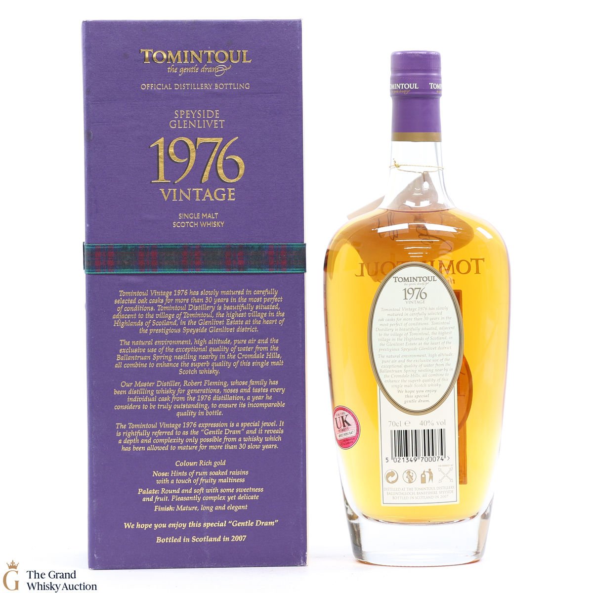 Distilled in 1976 at Tomintoul distillery it was a record-breaking year of sunshine and high temperatures. Left to mature for over 30 years before being bottled in 2007, master distillery Robert Fleming nosed and tasted every cask from the outstanding vintage 1976.