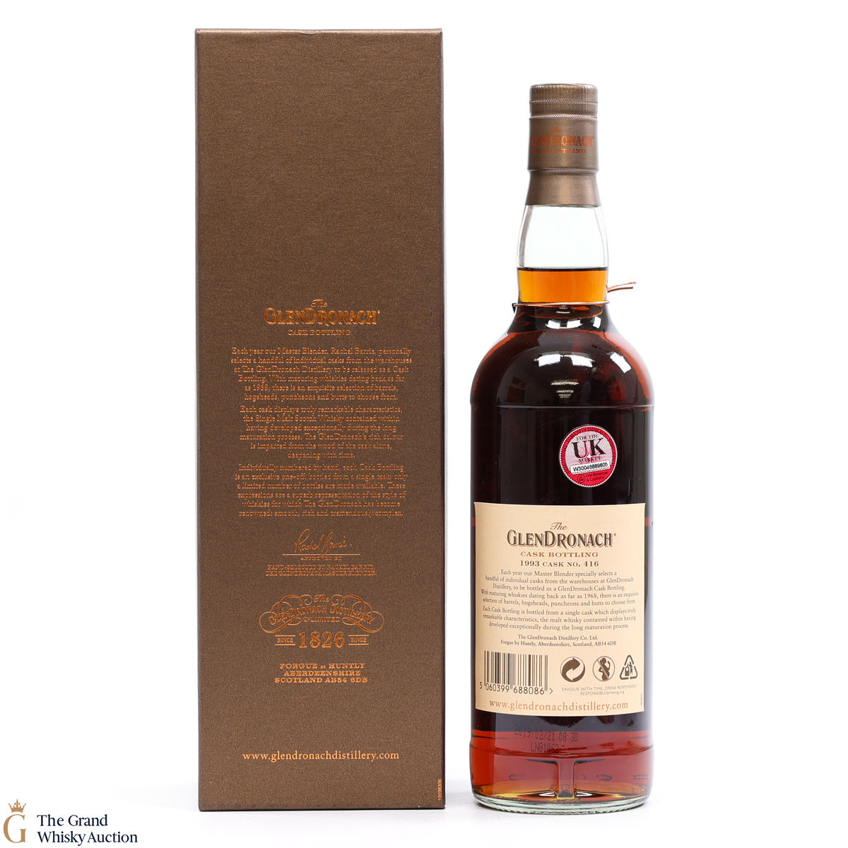 Due to the various ages of bottles and their seals, the condition of liquid is at the buyer's discretion and no claim can be lodged against failure/leakage in transit. Loss and breakage cover is available at 3% of the hammer price as standard. If the lot is not insured, no claim can be lodged against the courier or The Grand Whisky Auction for breakage or loss in transit.