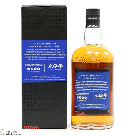 Following a world record-breaking season this small-batch, limited edition single malt was specially selected by Rangers Football Club and bottled by Douglas Laing. Matured in a combination of American oak casks and European oak Sherry casks.
