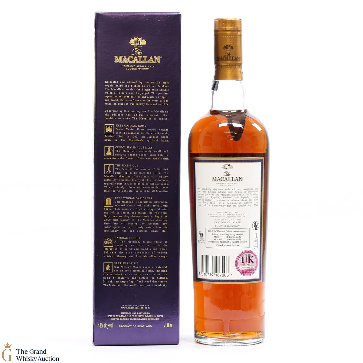 Due to the various ages of bottles and their seals, the condition of liquid is at the buyer's discretion and no claim can be lodged against failure/leakage in transit. Loss and breakage cover is available at 3% of the hammer price as standard. If the lot is not insured, no claim can be lodged against the courier or The Grand Whisky Auction for breakage or loss in transit.