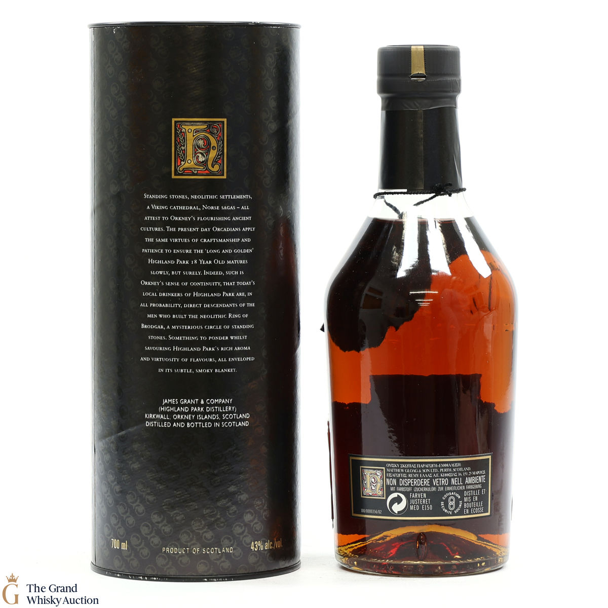 Due to the various ages of bottles and their seals, the condition of liquid is at the buyer's discretion and no claim can be lodged against failure/leakage in transit. Loss and breakage cover is available at 3% of the hammer price as standard. If the lot is not insured, no claim can be lodged against the courier or The Grand Whisky Auction for breakage or loss in transit.