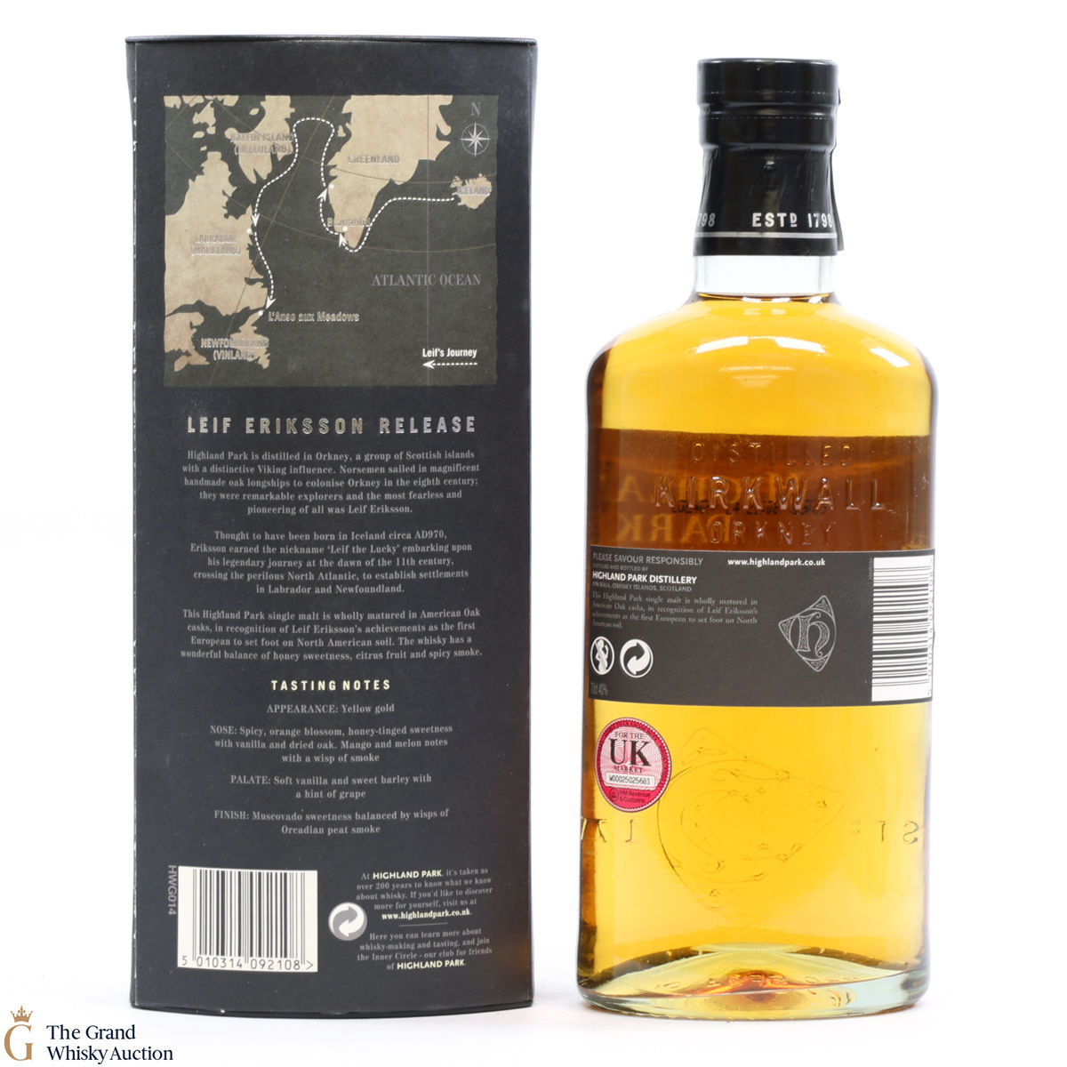 Launched in March 2010, for the travel retail market, Highland Park Leif Eriksson Limited Edition was released to celebrate the first European to reach America over a thousand years ago. The single malt was matured in American oak casks, both ex-bourbon and ex-sherry in recognition of Leif Eriksson, a pioneering Viking explorer, as the first European man to set foot on American soil.