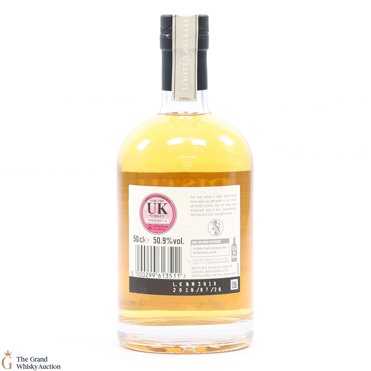 Due to the various ages of bottles and their seals, the condition of liquid is at the buyer's discretion and no claim can be lodged against failure/leakage in transit. Loss and breakage cover is available at 3% of the hammer price as standard. If the lot is not insured, no claim can be lodged against the courier or The Grand Whisky Auction for breakage or loss in transit.