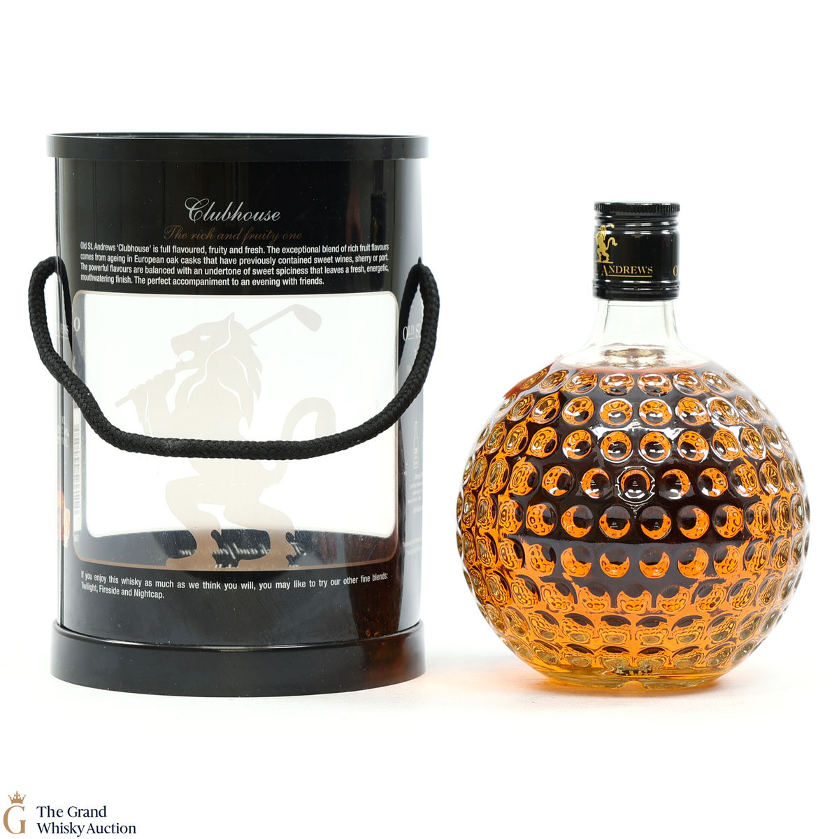 Old St Andrews Clubhouse, a blended whisky in the bottle form of a golf ball-shaped decanter.