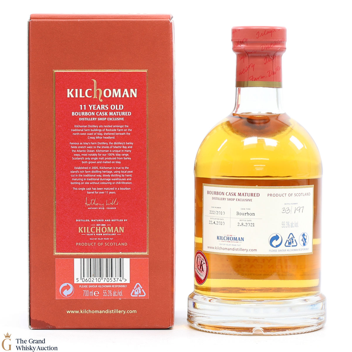 This bottling from Kilchoman was distilled on 22nd April 2010 and was bottled on 2nd August 2021 at 11 years old. The whisky was aged in bourbon barrels #222 and was a distillery shop exclusive.