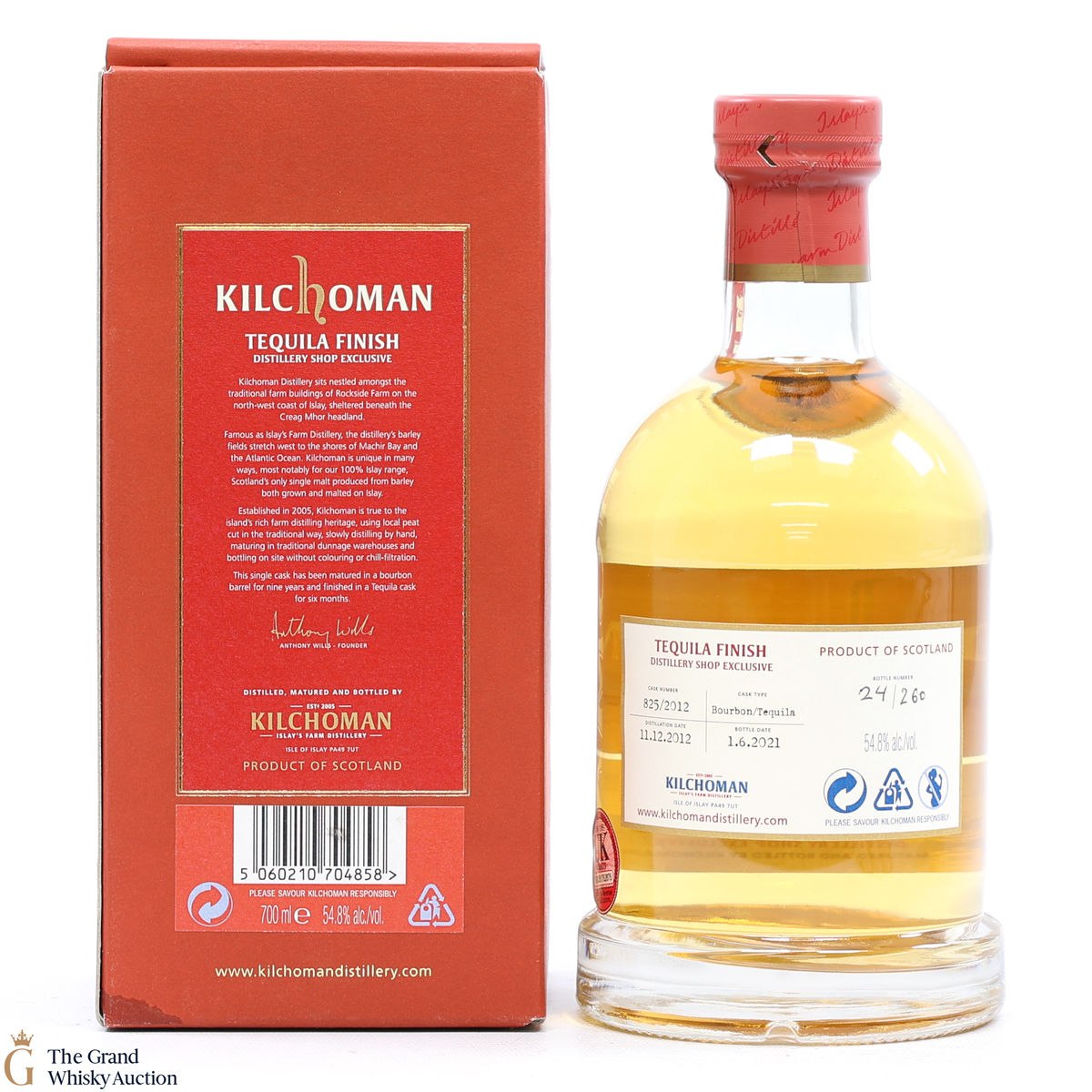This 2012 Kilchoman single malt was distilled in December and filled into cask #825/2012 until it was given a finishing period in tequila. Bottled in June 2021, this is one of only 260 bottles.