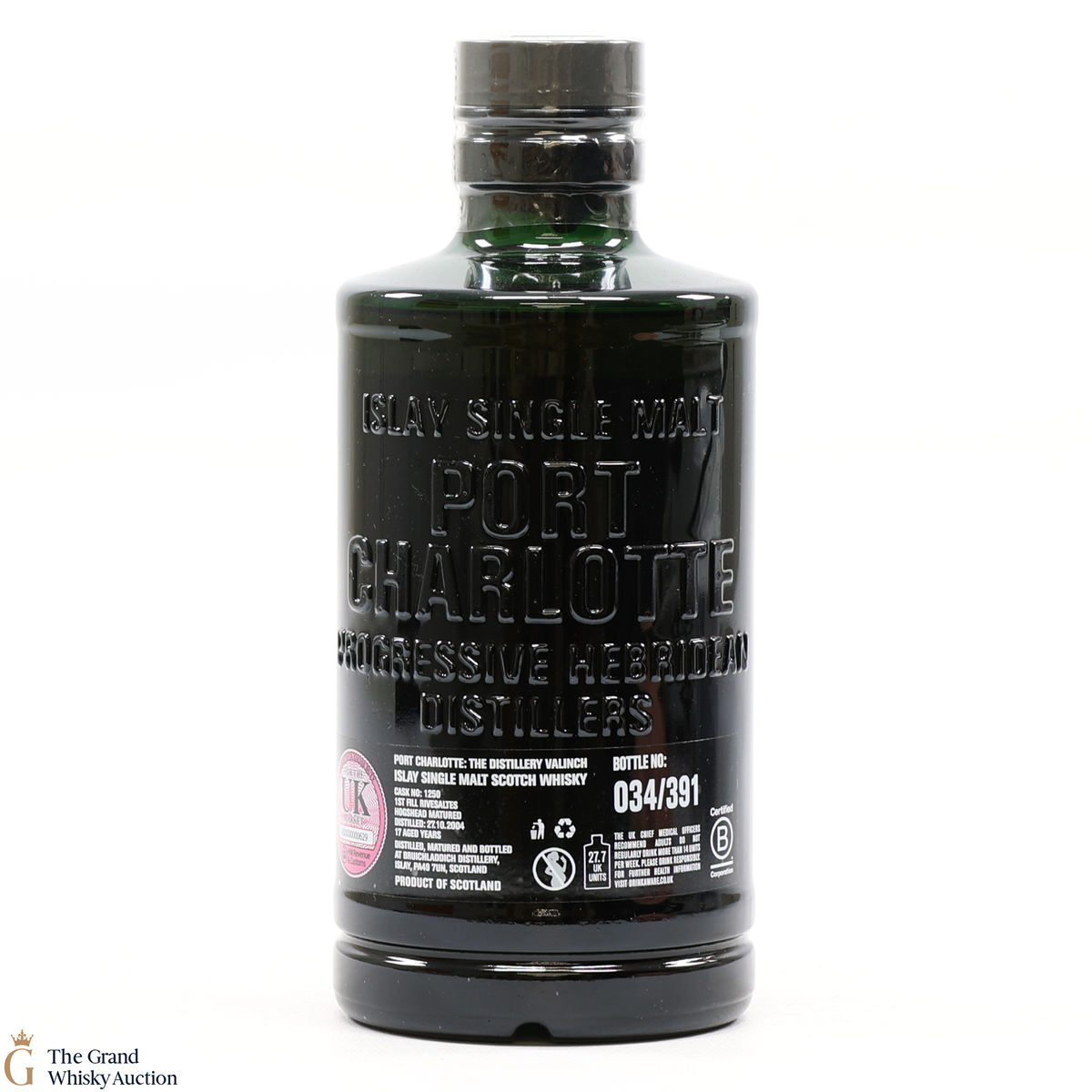 This Port Charlotte Valinch single cask is a single cask distillery-only release. Distilled in Islay in 2004, matured in Rivesaltes Hogshead #1250 for 17 years. This is one of 391 bottles