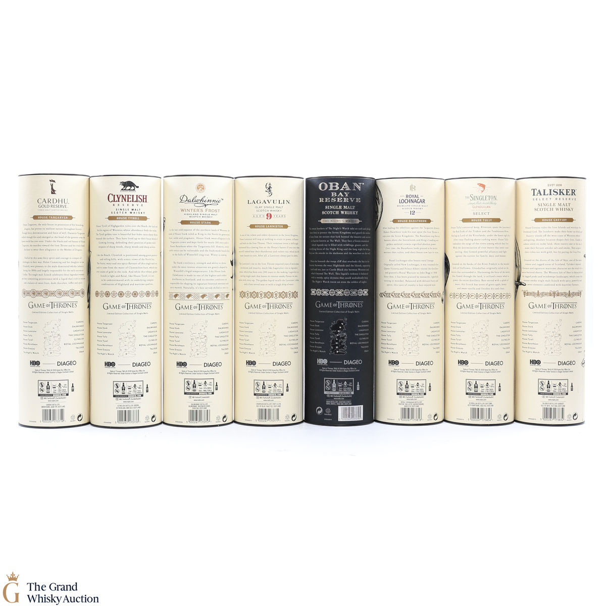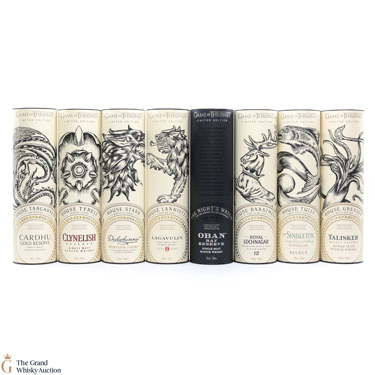 Each of the Game of Thrones Scotch whiskies has been paired with a particular house from the seven kingdoms in the television series, plus the Night’s Watch guard.