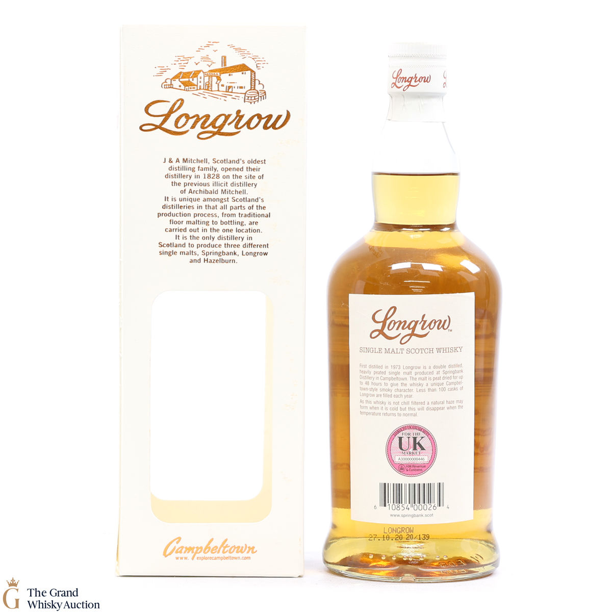 A bottle of Longrow Peated - This is essentially the awesome Longrow C.V. bottling in new packaging, which used to be Longrow's entry-level whisky. Longrow is Springbank's heavily peated whisky - this is a no age statement expression.