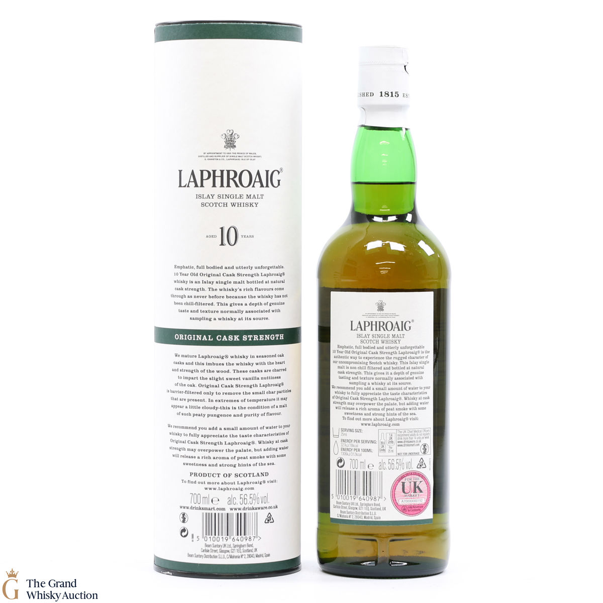 This bottling is from batch 015, original cask strength bottling of the medicinal 10 year old from Islay's bestselling distillery, Laphroaig. In making Laphroaig, malted barley is dried over a peat fire. The smoke from this peat, found only on Islay, gives Laphroaig its particularly rich flavour. This release was bottled in December 2021 at 56.5% ABV.