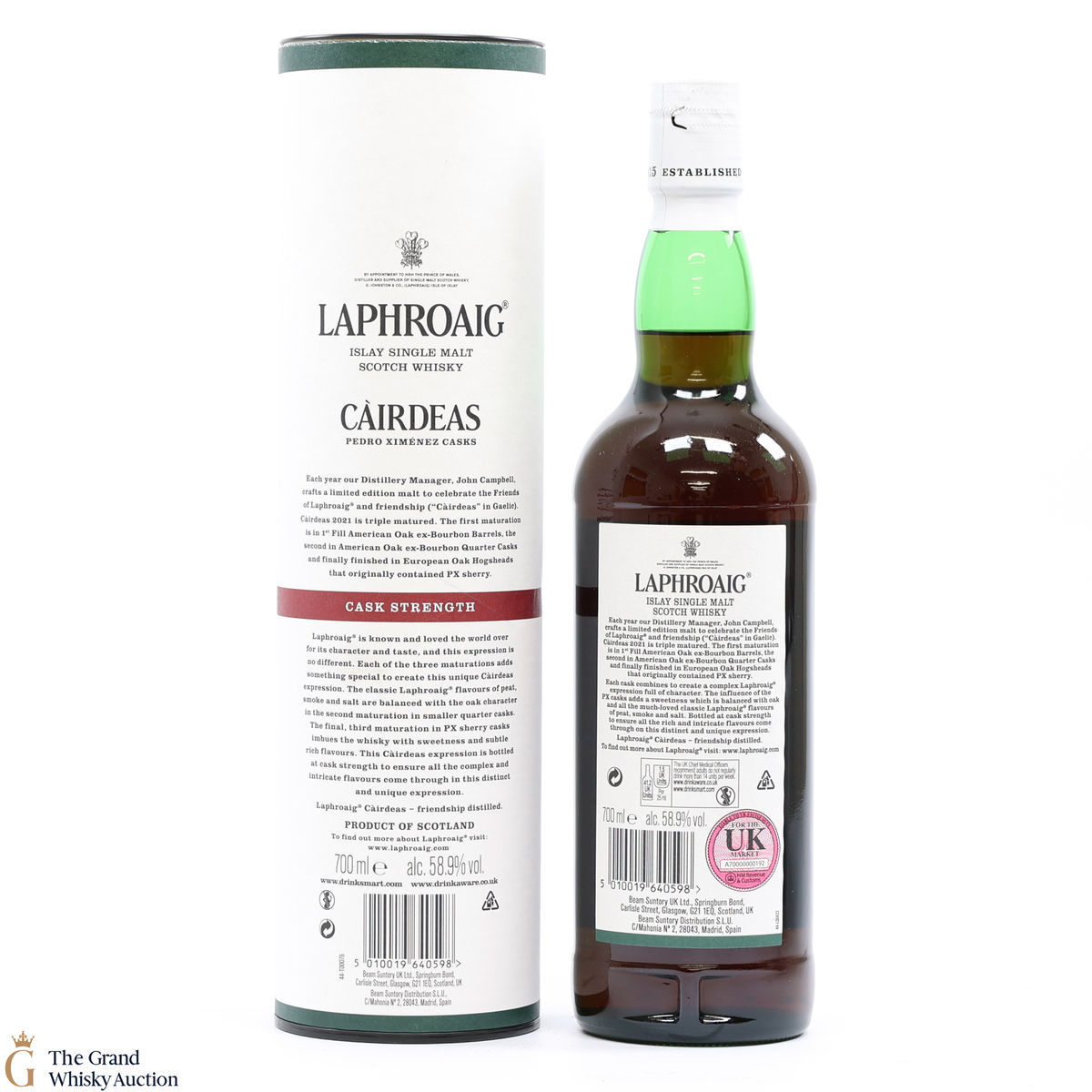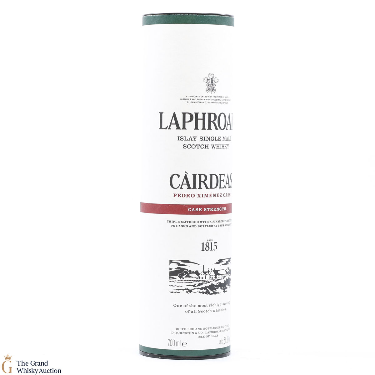 The 2021 edition of Laphroaigs Cairdeas series was first matured in a 1st fill American oak ex-bourbon barrel, then in an American oak ex-bourbon quarter cask before finally being finished in European PX sherry casks. Bottled at the cask strength of 58.9% ABV in 2021 to celebrate the Friends of Laphroaig.