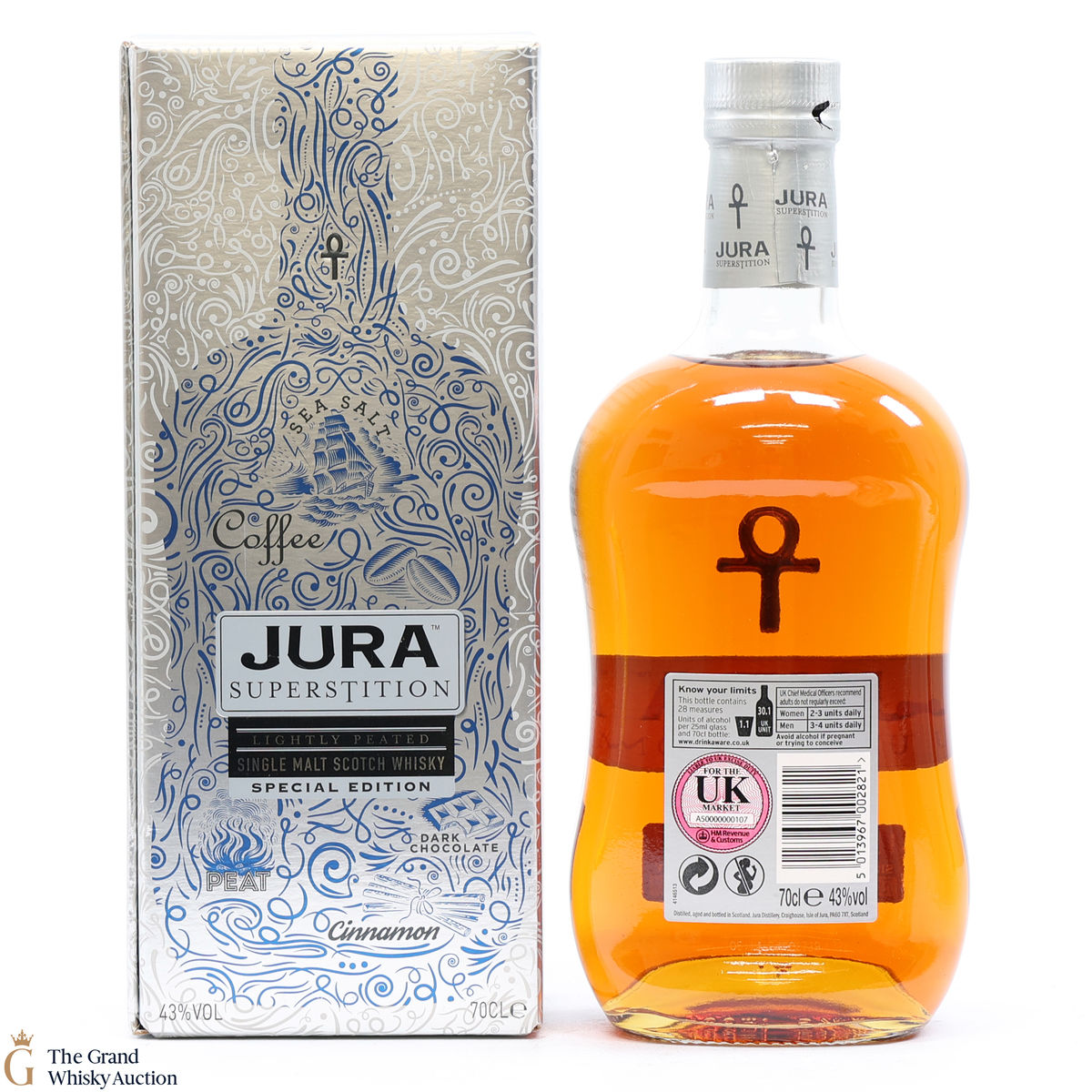 A lightly peated single malt made up of different ages. It is named after the fact that Islanders were very superstitious in the past, this is a nod to them, and to the Island of Jura which is still dotted with ancient stones and markings. When you raise a glass of this whisky, you're raising a glass to the ancient ways of the island.