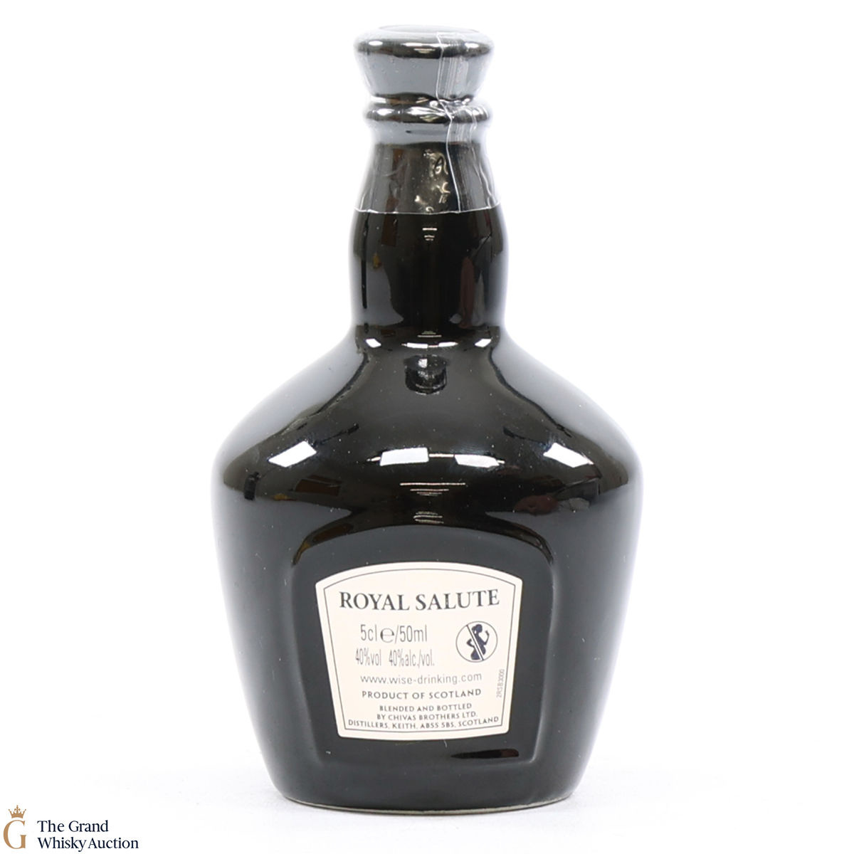This is a 5cl edition of Chivas' Royal Salute 21-Year-Old blended whisky in a black flagon.