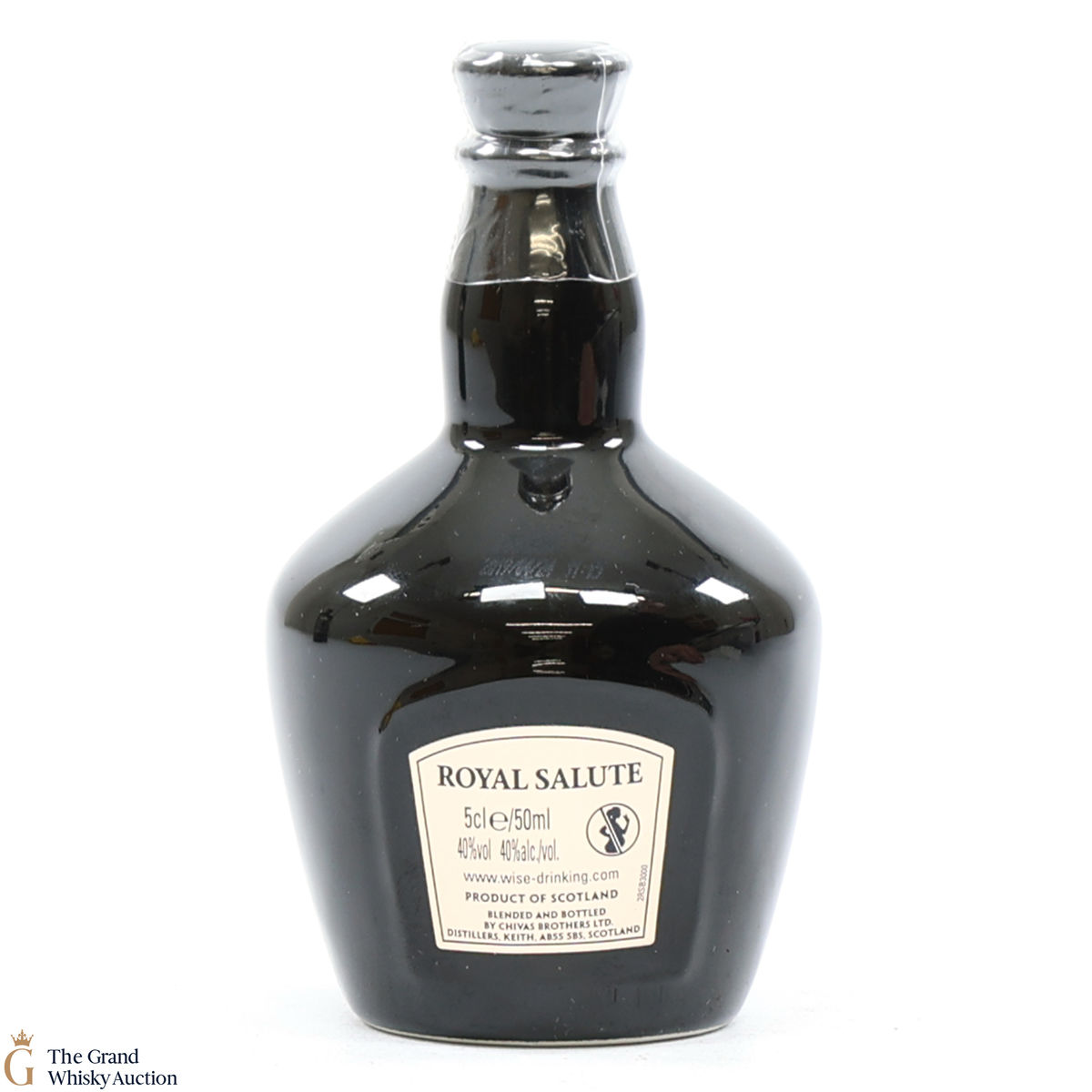 This is a 5cl edition of Chivas' Royal Salute 21-Year-Old blended whisky in a black flagon.