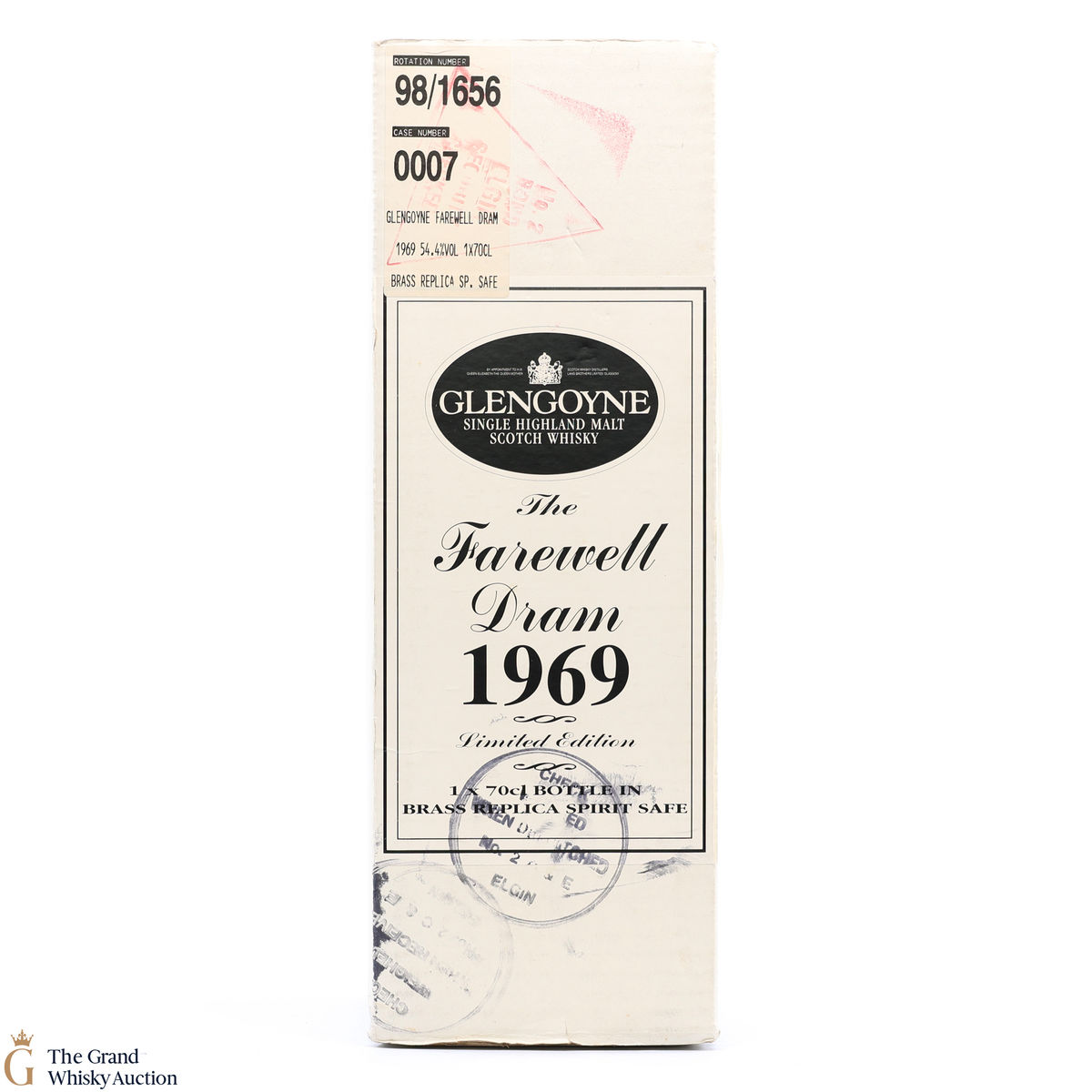 This special limited edition Highland 1969 Glengoyne was bottled to commemorate the retirement of the Distillery Manager, Ian Taylor, after 19 years of service, in June 1998. A fitting Farewell dram indeed... selected by Ian and drawn from a single sherry cask at a cask strength of 54.4% ABV. One of only 204 bottles.