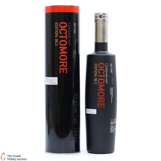 This Bruichladdich Octomore 6.2 Islay whisky is a 2013 release of the heavily peated single malt whisky has been matured in Limousin oak casks. This 5 year old is a limited edition is one of 18,000 released exclusively for the travel retail market.