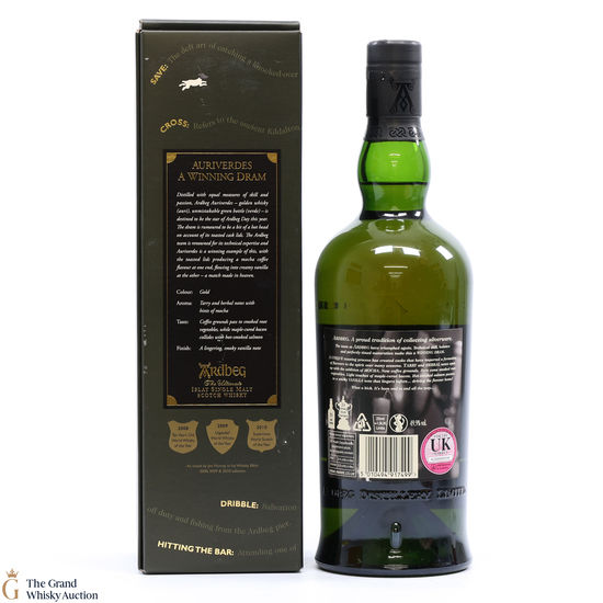 This special edition Ardbeg single malt was released on Ardbeg Day 2014 during Feis Ile. Auri(Gold) Verdes (Green) it refers to the golden whisky and the iconic Ardbeg green bottle of Ardbeg whisky. It is said to be a dram of two halves - the whisky uses toasted cask lids to create Mocha Coffee flavours that team up with creamy vanilla.
