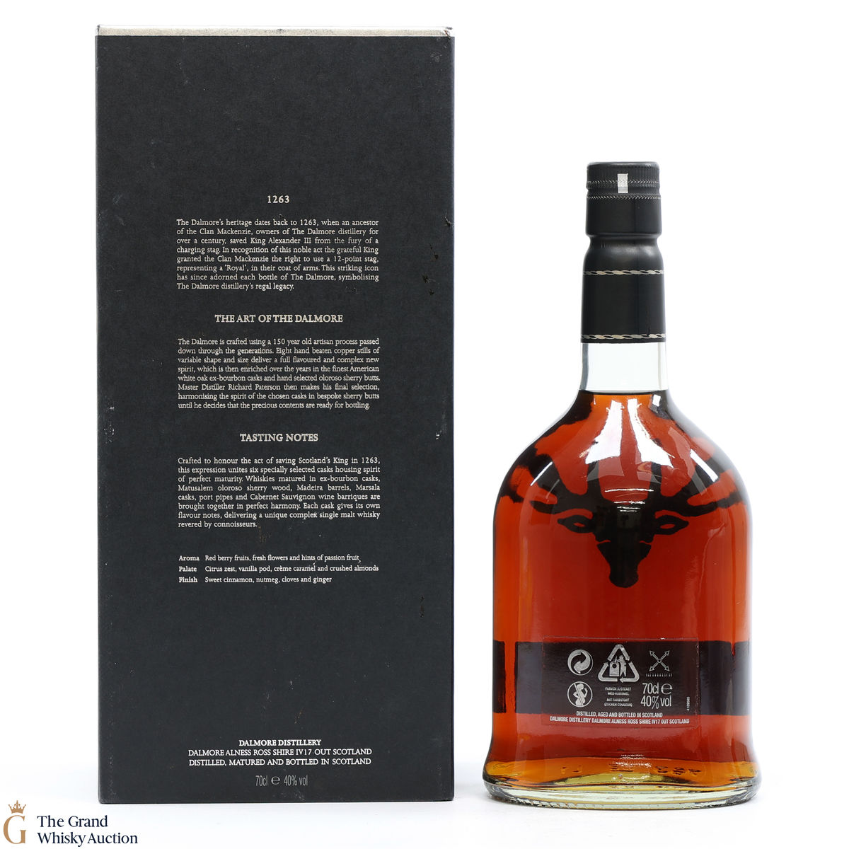 To make The Dalmore King Alexander III, Master Distiller Richard Paterson specially selected 6 casks of differently aged Dalmore malts matured in wine, Madeira, sherry, marsala, Kentucky bourbon and port casks. A remarkable feat of blending crafted to honour the act of saving Scotland's King in 1263. It is a rich, fruity Highland single malt.