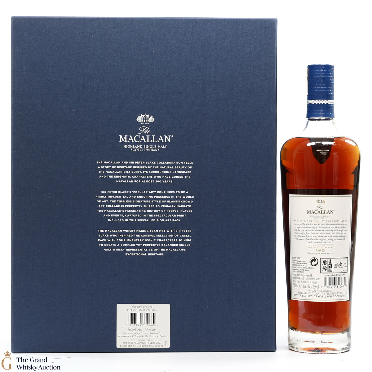 Part of The Anecdotes of Ages Collection, this is an extraordinary art and whisky collaboration with Sir Peter Blake. Being the third collaboration between the Macallan Distillery and Sir Peter Blake, this single malt was created to commemorate Sir Peter Blake's visit to The Macallan Estate. An Estate, a Community and a Distillery tells the story of some of the colourful characters from the distilleries past and present and features a label designed by Sir Peter Blake.