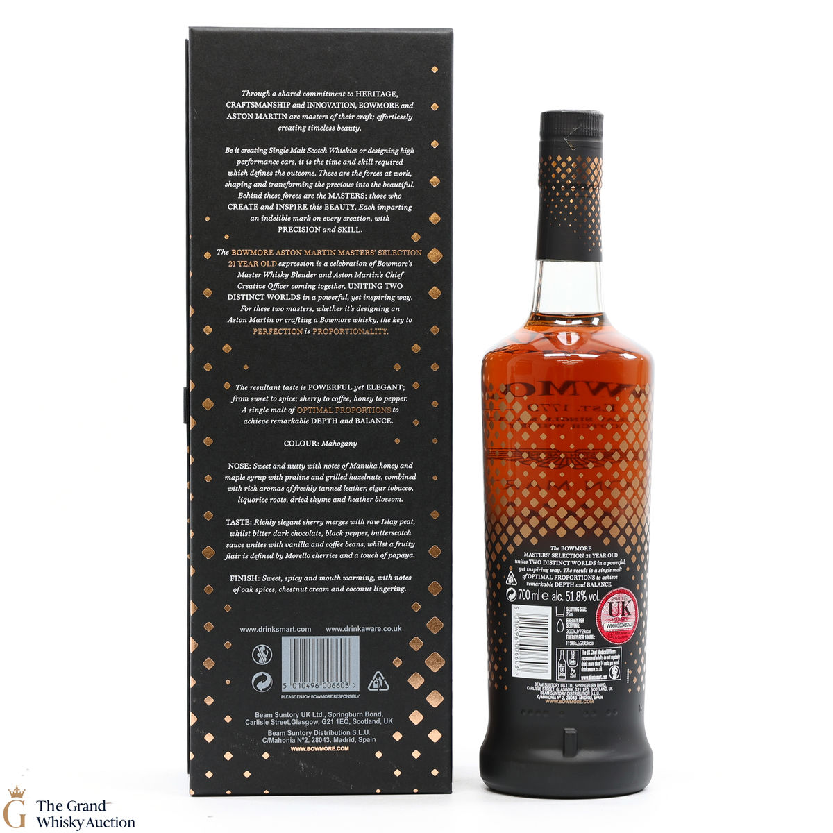This 21-Year-Old Bowmore is a limited-edition single malt created in collaboration between Ron Welsh, Bowmore Master Blender and Marek Reichman, Aston Martin Chief Creative Officer. Matured in a combination of oloroso and Pedro Ximenez sherry casks. The result is a single malt that thrills all the senses for optimal enjoyment.